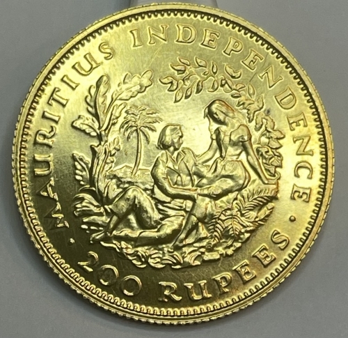 • Золотая монета 200 рупий "Независимость Маврикия" 1971г., 15,579г., Au 917