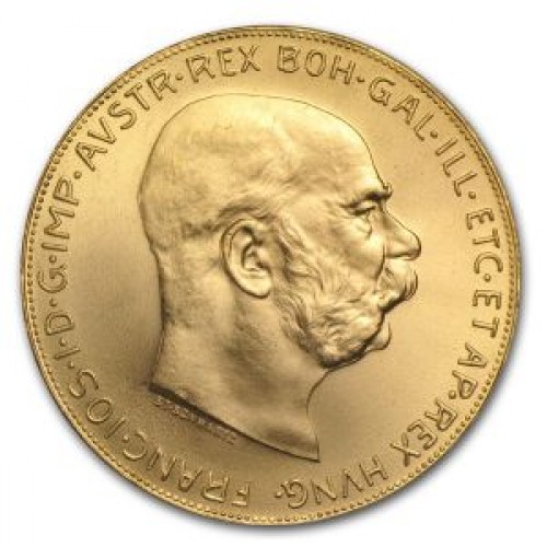 Золотая монета Австрии 100 Крон 1915 год Рестрайк