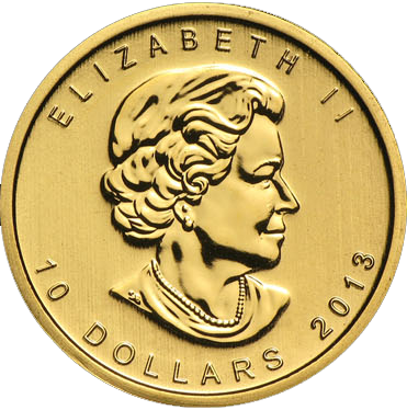 Золотая монета Канады "Кленовый лист", Canadian Gold Maple Leaf 10 долларов, 1/4 OZ