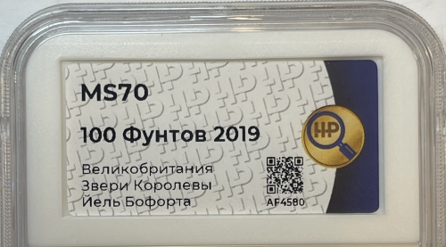 Золотая монета Великобритании 100 фунтов "Йель Бофорта" 2019 года 31,1 г. в слабе ННР MS 70